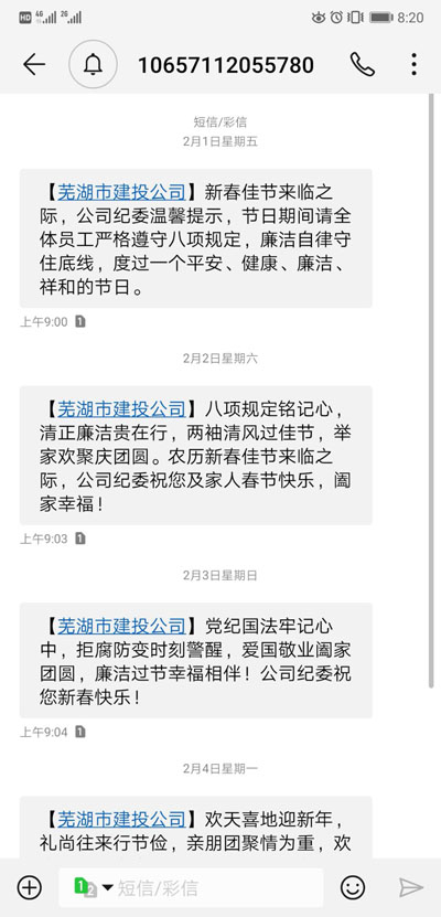 ▲通過微信、短信平臺發(fā)送元旦春節(jié)廉政短信,送出新年祝福的同時也送出了廉政提醒