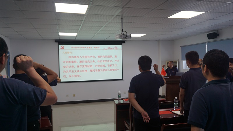 活動(dòng)伊始,黨支部書記周玉成帶領(lǐng)大家重溫入黨誓詞,大家鄭重舉起右拳,高聲宣讀入黨誓詞,鏗鏘有力。通過重溫入黨誓詞,大家再一次接受了心靈的洗禮,再一次受到了黨性的錘煉。